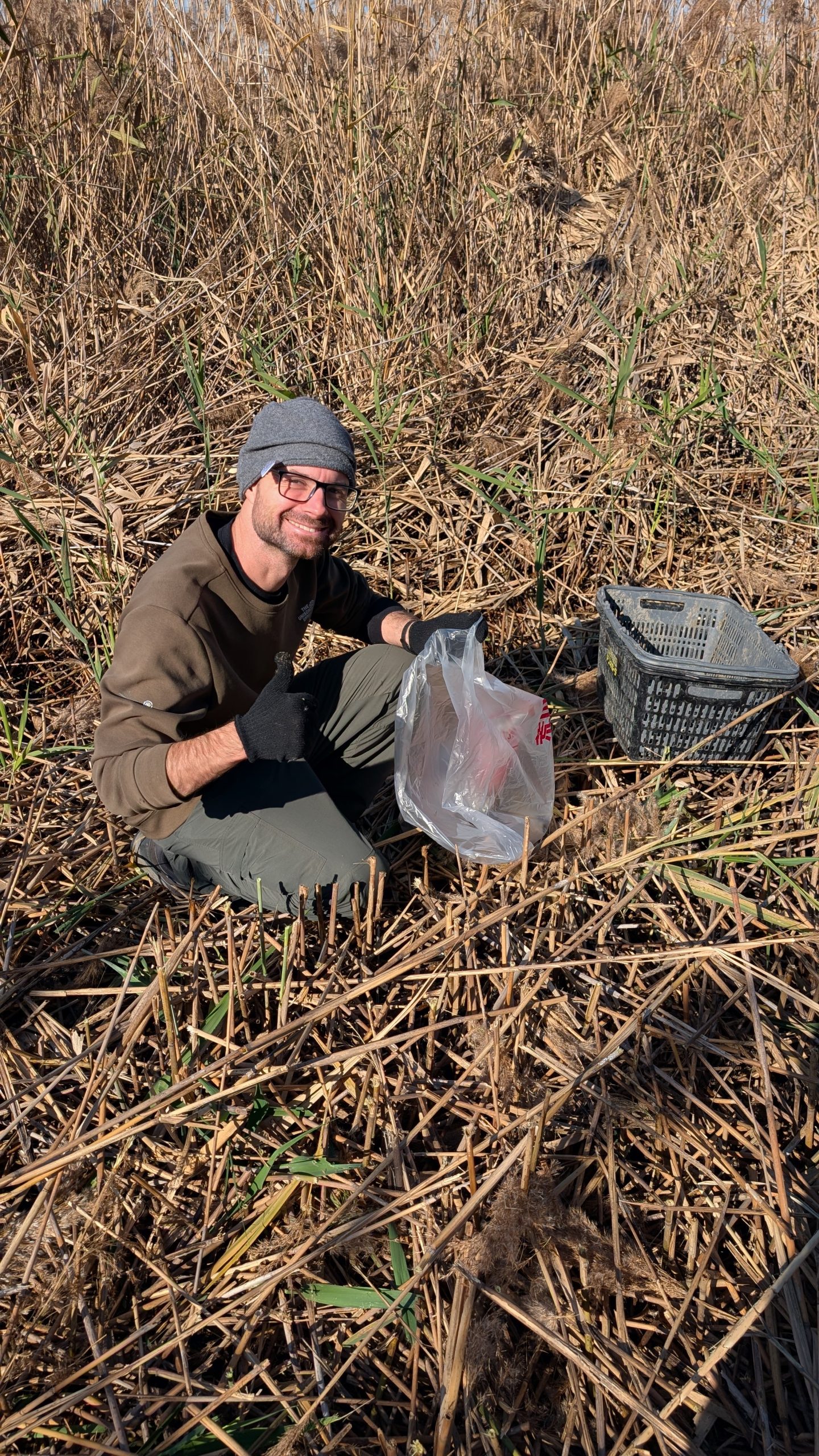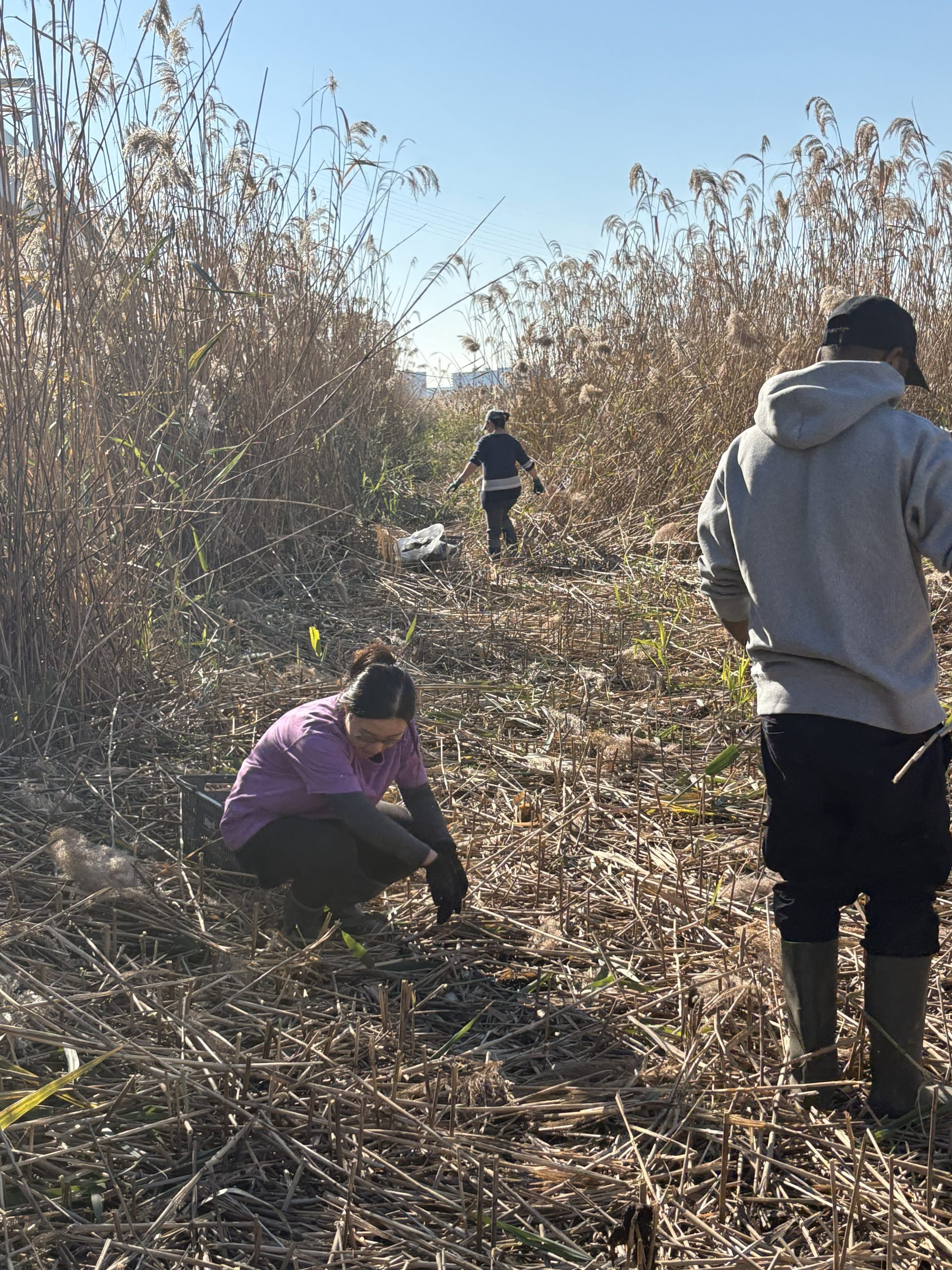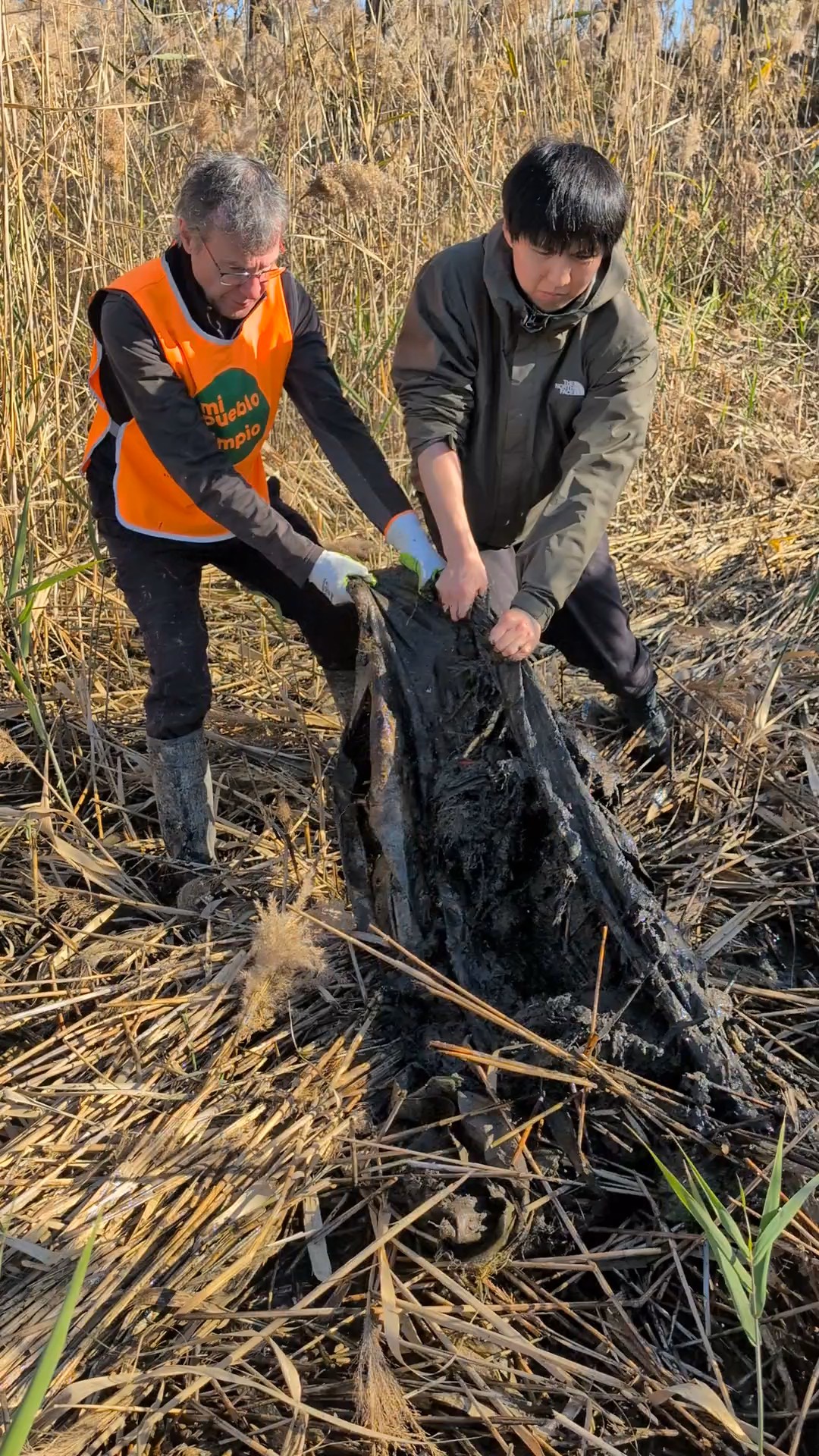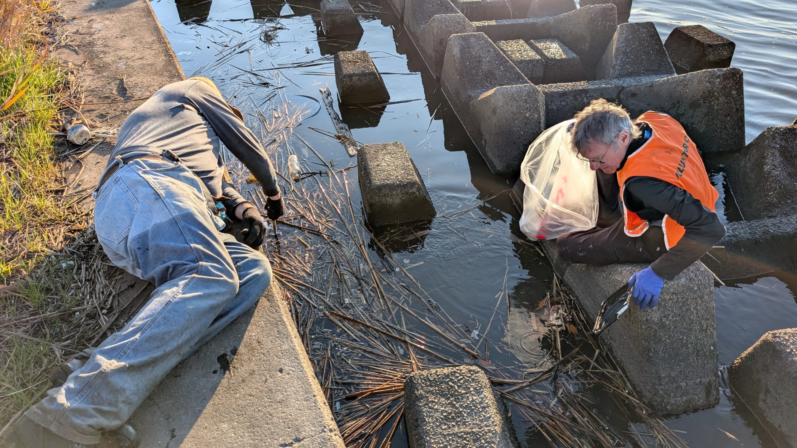 It was a big day on the Arakawa today with 11 volunteers collecting 58 bags of trash at Funabori. Again, it was great weather and a great effort by everyone to really collect a lot of trash. A couple, who organize a similar group in Spain, joined us today for a second time after joining about three years ago (wearing orange vests from their group). They also helped clean the dirty angle after the event finished which added about 14 bags to the total after the main group collected about 44 bags at the second pod section. Mina-san otsukaresama desu!