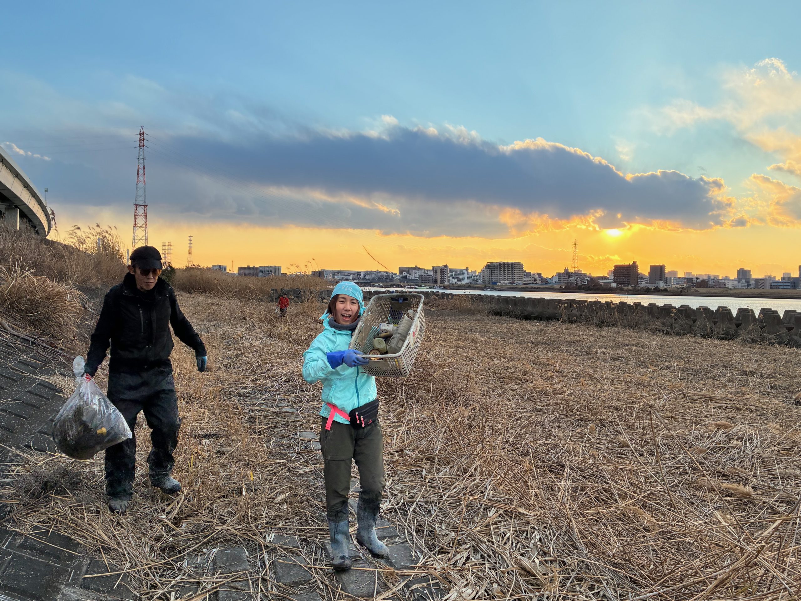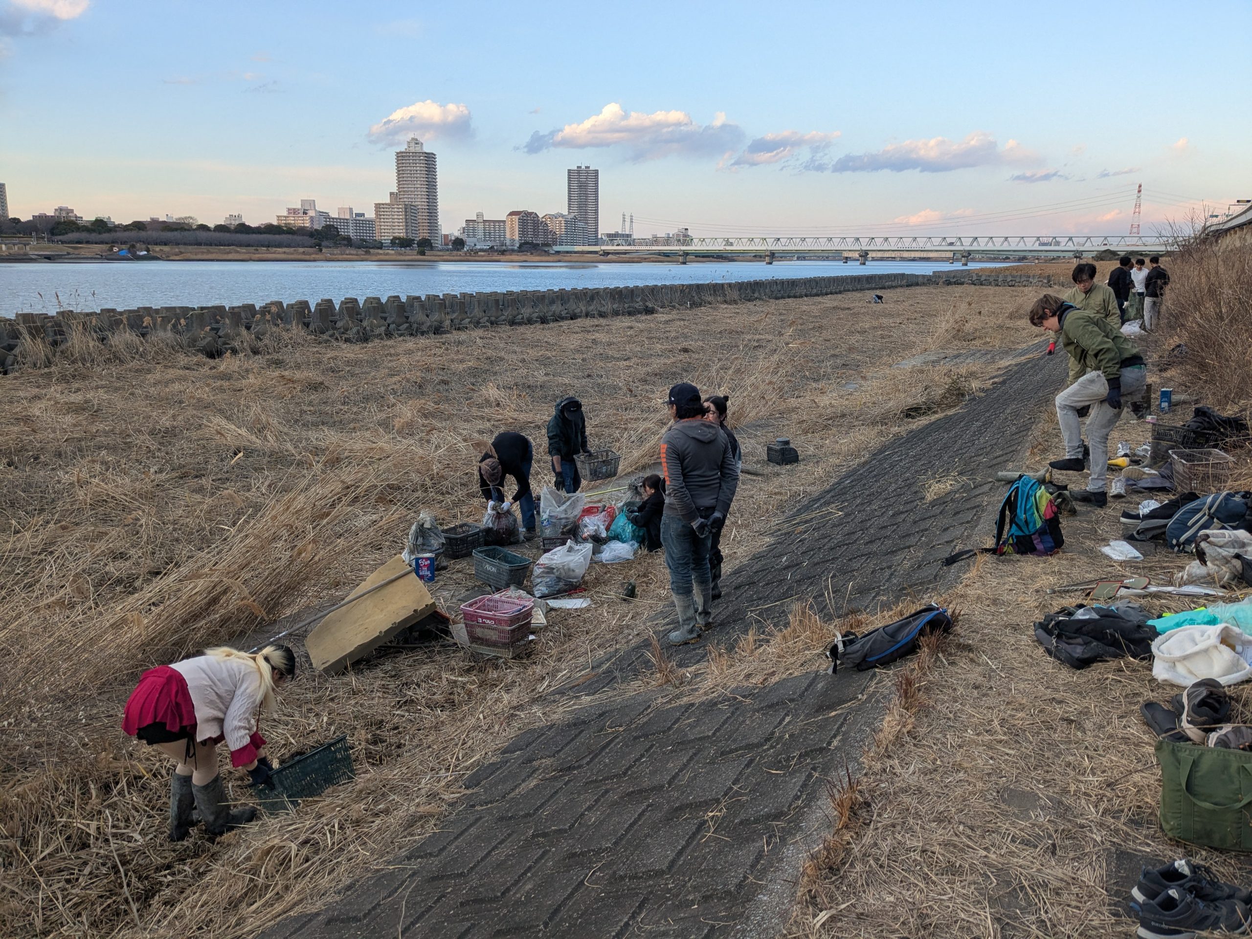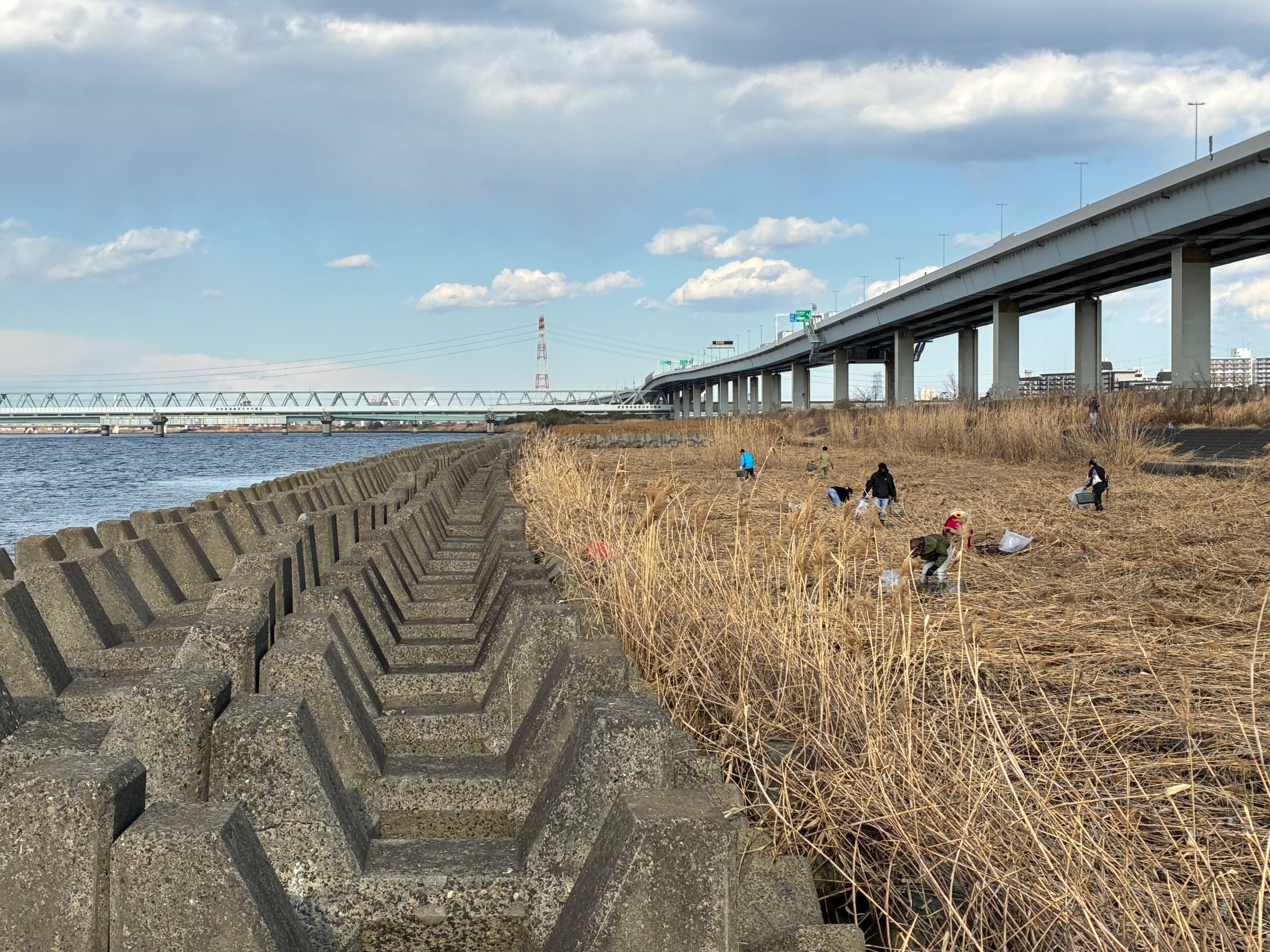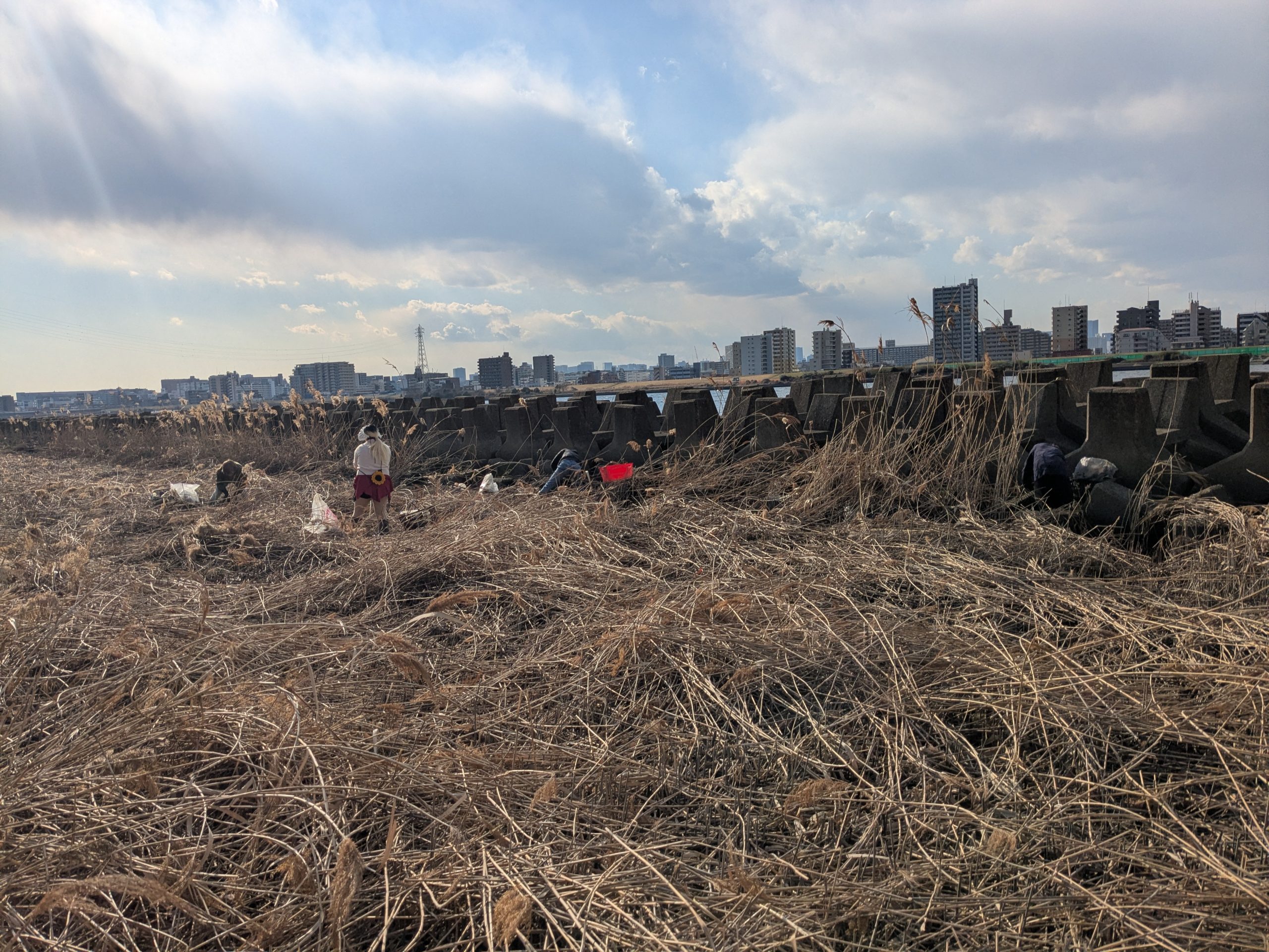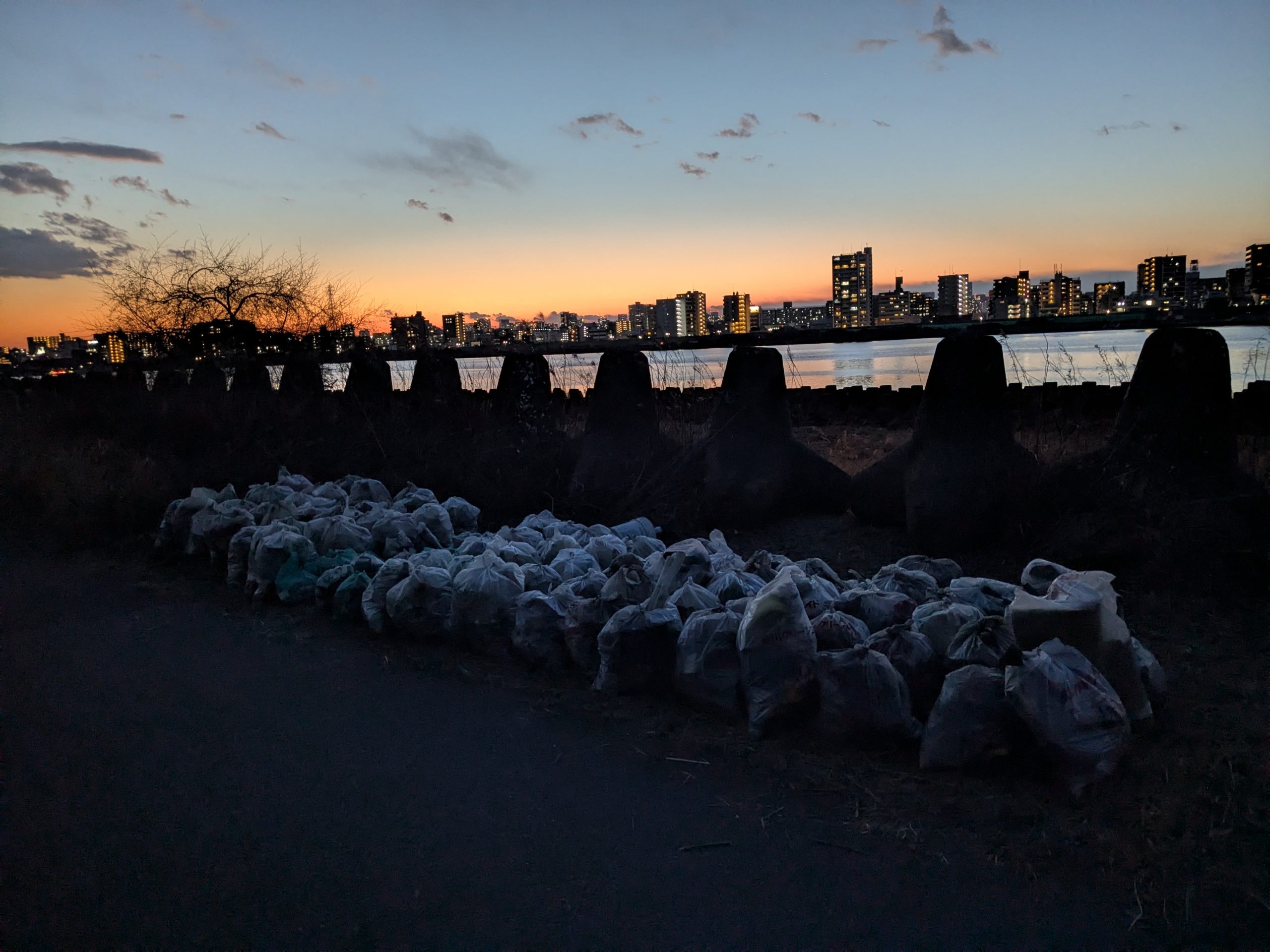 Eighteen volunteers collected 62 bags of trash at today’s Arakawa River clean up event. We reached a milestone by finishing the clearcutting of grass on the second section of pods along with another nice haul of gomi. But from here on our it should be diminishing returns on this area as we try to thoroughly clean it before the grass grows back at the end of April. Anyway, there was lots of hidden trash where the grass had been and a great effort by a large group today to collect such a large amount. Mina-san otsukaresama desu.
