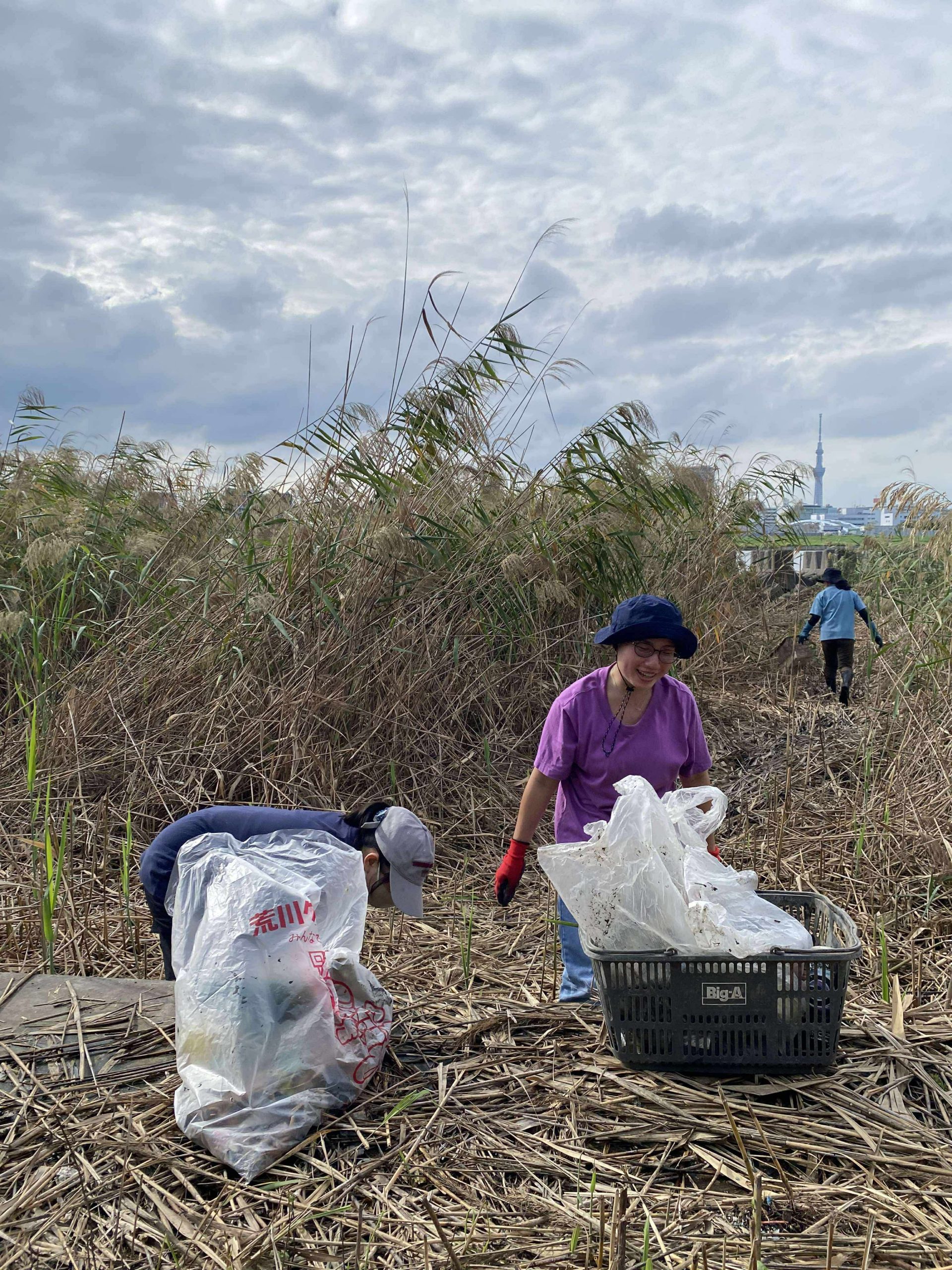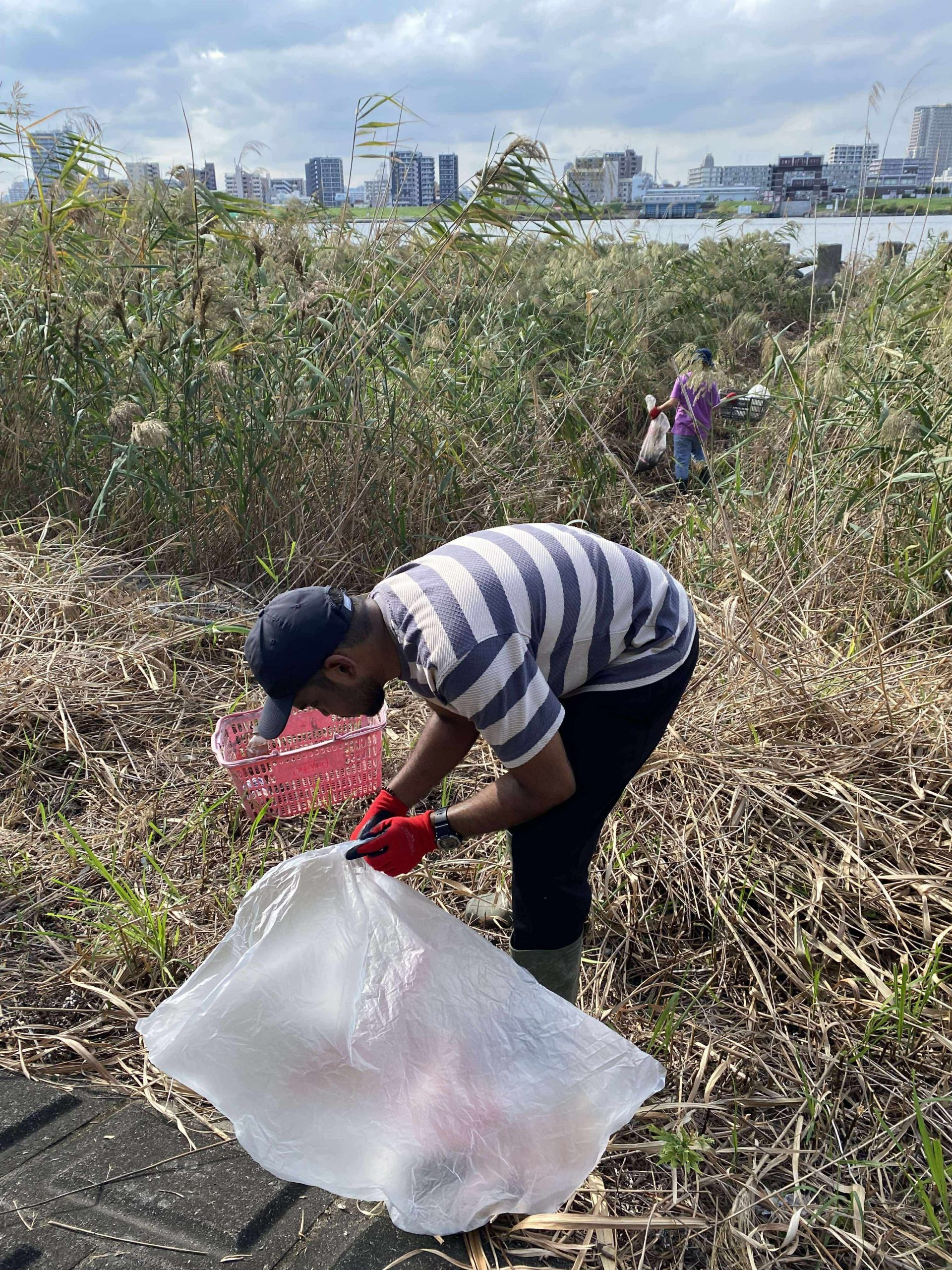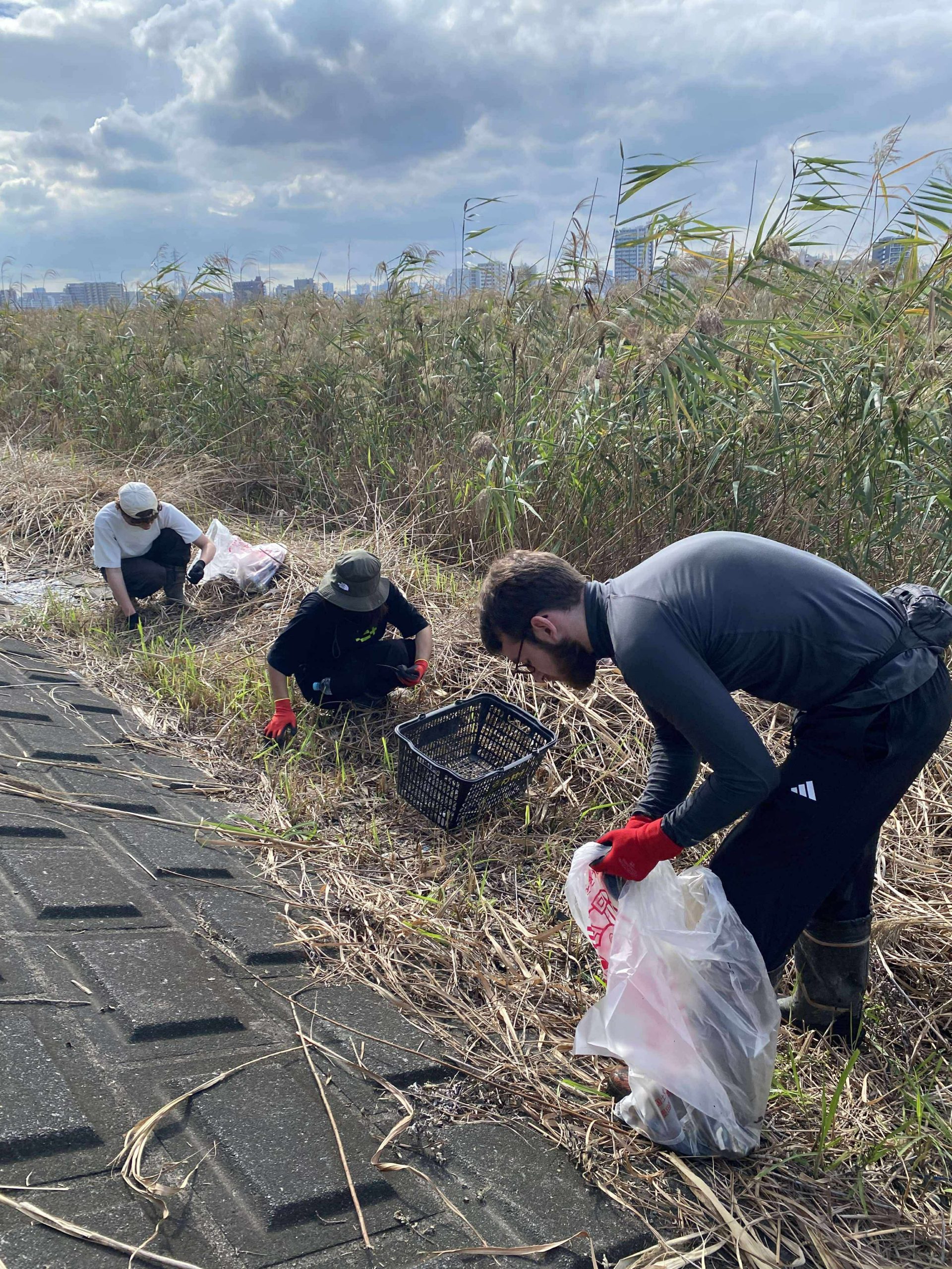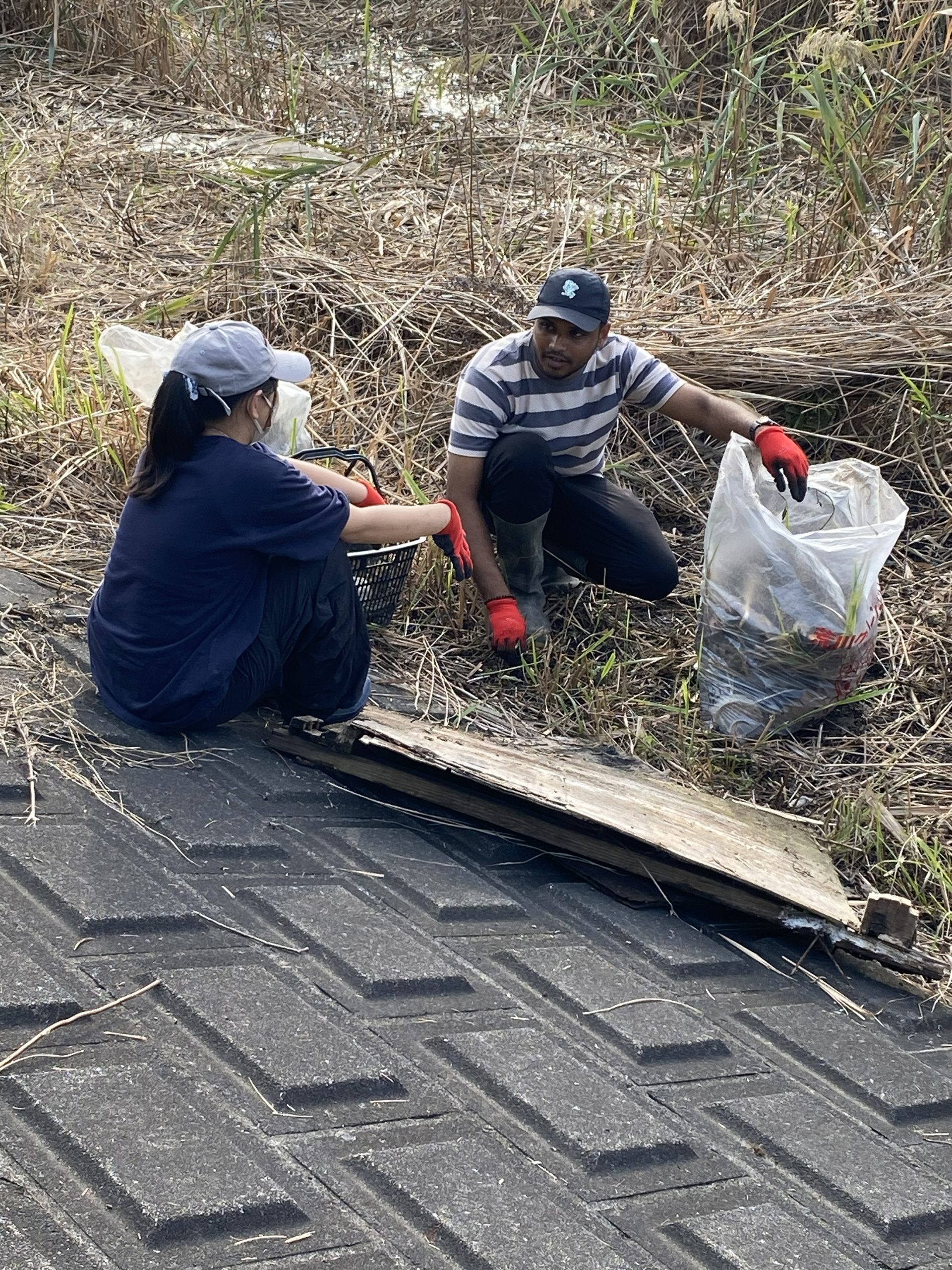 The tide came in faster than expected, so everyone worked hard despite getting covered in mud. In the latter half, we couldn’t go down to the river anymore, so the amount we collected was relatively small (13 bags), but it was really good that 11 people came together to help. Great job, everyone!