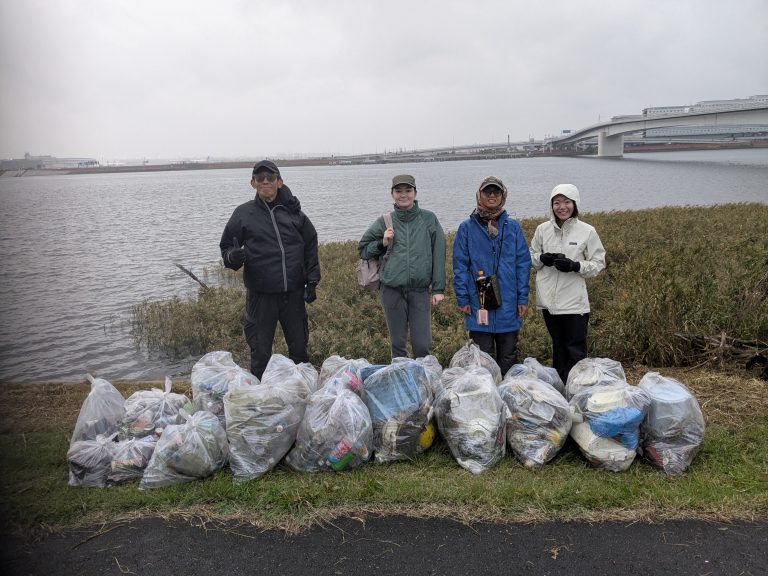 Five volunteers collected 19 bags of trash at today's Tamagawa River Clean Up event just across the river from Haneda ...