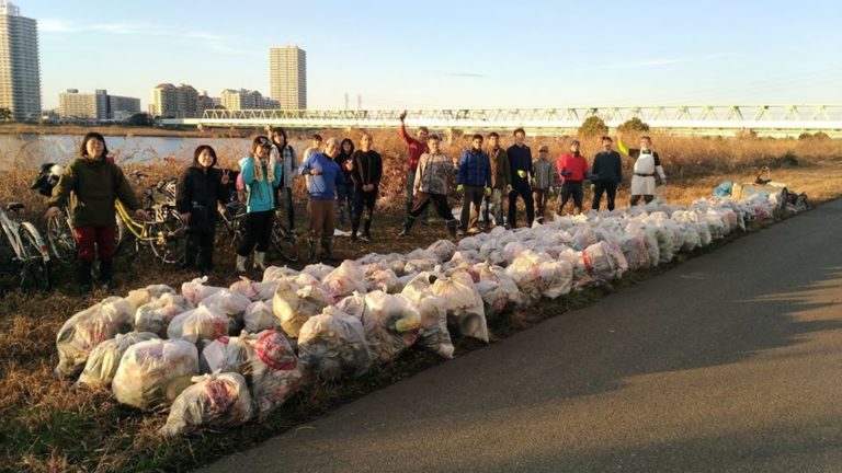 Arakawa River Clean Up today at Yahiro (about 8km upstream from Tokyo Bay). Four volunteers collected 52 bags of trash ...