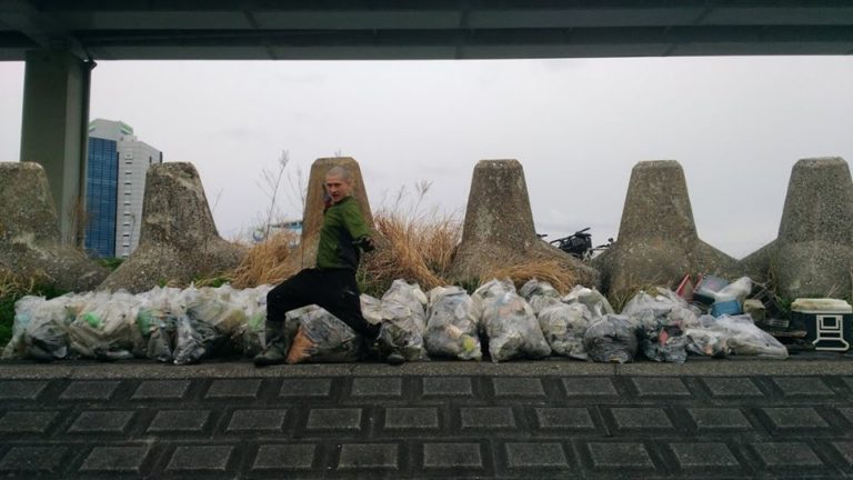 Just 3 volunteers (1 Briton, 1 American and 1 Japanese) collected 40 bags of trash. We cheated a bit with ...