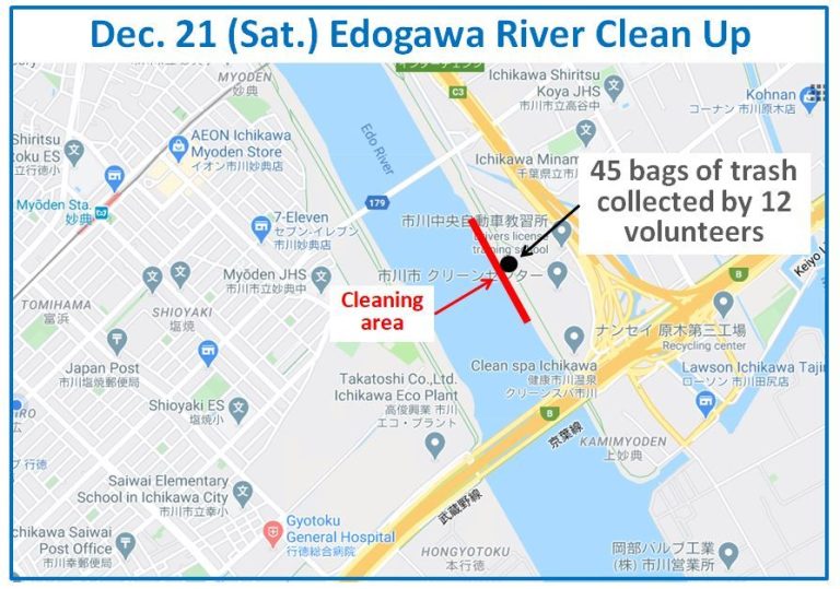 Twelve volunteers collected 45 bags of trash at today's Edogawa River clean up on the Barakinakayama side of the river ...