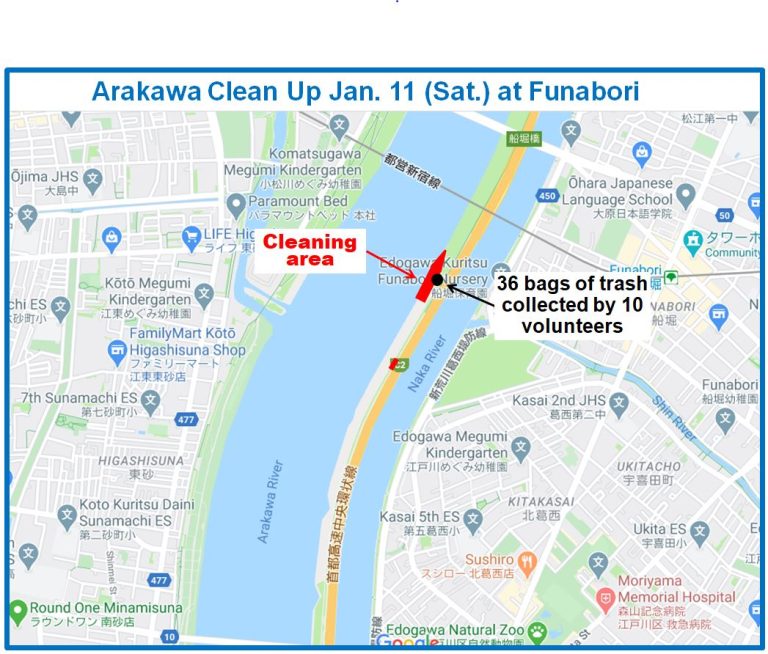 Ten volunteers collected 36 bags of trash yesterday's Arakawa clean up at Funabori. In this second event of 2025, a ...