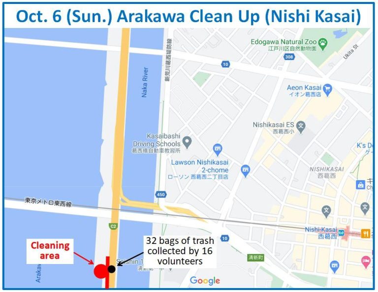 Sixteen volunteers collected 32 bags of trash at today's Arakawa River clean up near Nishi Kasai. Broken down that was ...
