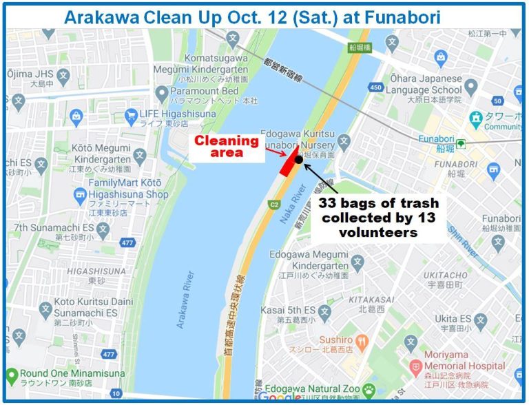 TRF was doing its thing again today on the Arakawa near Funabori. Attendance was healthy with 13 volunteers collecting 33 ...