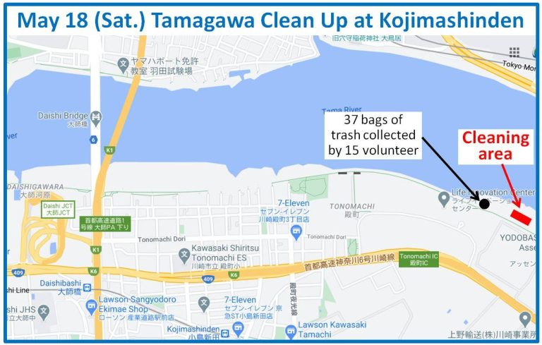 In the 1st event of a weekend doubleheader, 15 volunteers collected 37 bags of trash at yesterday's Tamagawa River clean ...