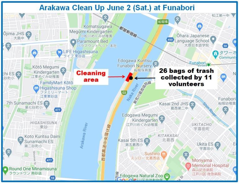 Nine volunteers collected 32 bags of trash at today's Arakawa River clean up event near Nishi Kasai. It was another ...